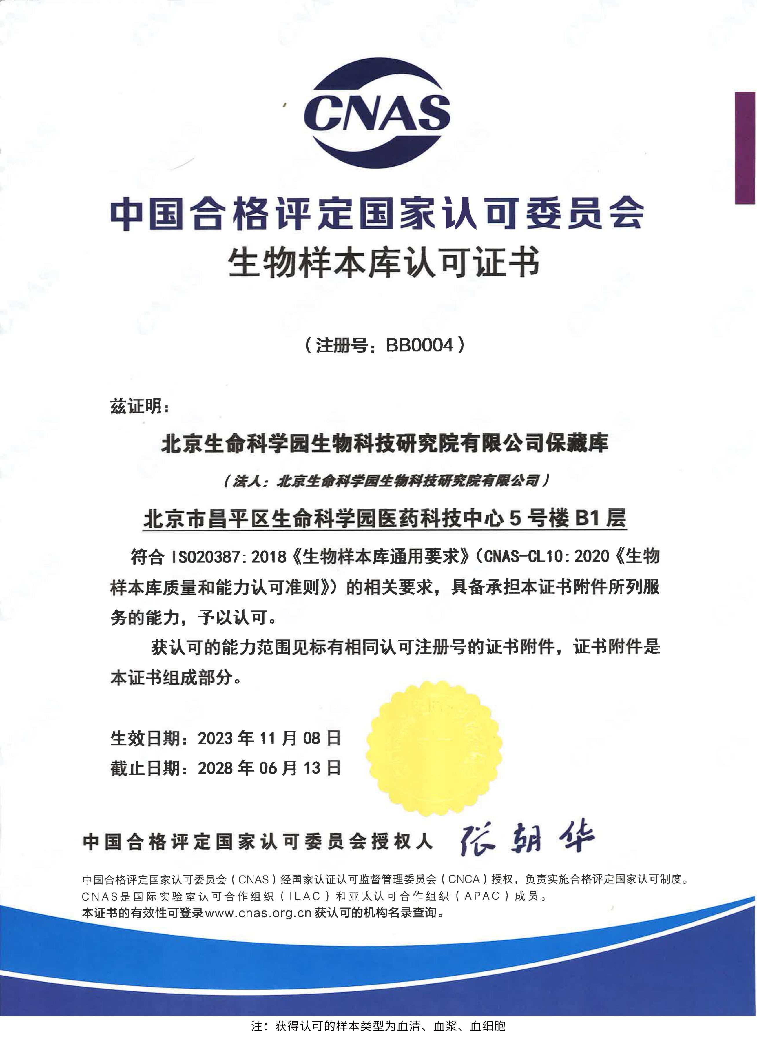 北京生命科學(xué)園生物科技研究院(以下簡稱“北京生物樣本資源庫”)(Biobank of Life Science Park,簡寫“BoLSP”)是一家由北京市科委和中關(guān)村生命科學(xué)園共同支持設(shè)立的第三方生物樣本庫公共服務(wù)平臺(tái),秉承北京重大疾病臨床數(shù)據(jù)和樣本資源庫(以下簡稱“北京庫”)(Beijing Biobank of Clinical Resources,BBCR)十余年的發(fā)展成果,聚合眾多臨床樣本專家的專業(yè)共識(shí),致力于在生命科學(xué)、生物醫(yī)藥研究領(lǐng)域發(fā)揮銜接樣本資源持有者與研究者的橋梁作用,解決生物樣本資源開發(fā)上下游信息不對(duì)稱、資源共享困難等問題。研究院在北京中關(guān)村生命科學(xué)園昌平園區(qū)建立了2000㎡生物樣本庫,最大存儲(chǔ)規(guī)模達(dá)1000萬份。研究院遵循CNAS-CL10:2020《生物樣本庫質(zhì)量和能力認(rèn)可準(zhǔn)則》,同時(shí)結(jié)合北京庫過去十年的工作經(jīng)驗(yàn)與教訓(xùn),建立了一套完善的生物樣本保藏質(zhì)量管理體系,從人、機(jī)、料、法、環(huán)、控多個(gè)角度,實(shí)現(xiàn)生物樣本保藏過程的全面質(zhì)量控制,先后獲得國家科技部頒發(fā)的人類遺傳資源保藏行政許可證書和中國合格評(píng)定國家認(rèn)可委員會(huì)(China National Accreditation Service for Conformity Assessment,CNAS)頒發(fā)的“CNAS認(rèn)可證書”。